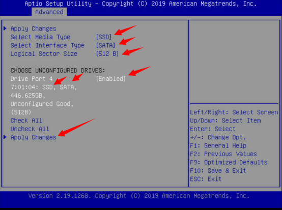 Select Drives:选择物理磁盘(选择需要制作RAID的硬盘,最上面一行,选中硬盘为HDD、SSD或者Both)